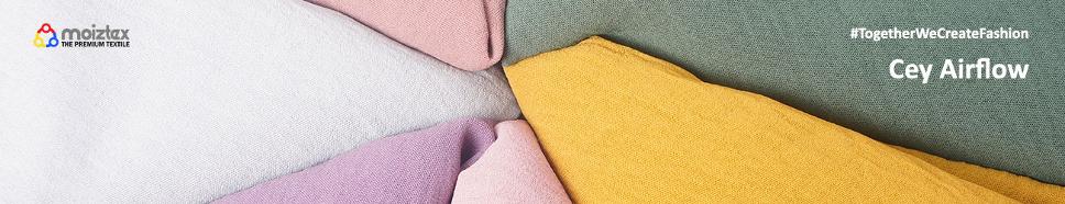 Bahan Cey Airflow ini adalah kain yang terbuat dari bahan polyester. Ciri utamanya adalah terdapat kerut (crinkle) di sepanjang kain dimana kerut ini tidak akan hilang walaupun sudah melalui proses pencucian. Meskipun berbahan dasar polyester, kain ini lembut dan adem karena menggunakan benang polyester yang di twist.