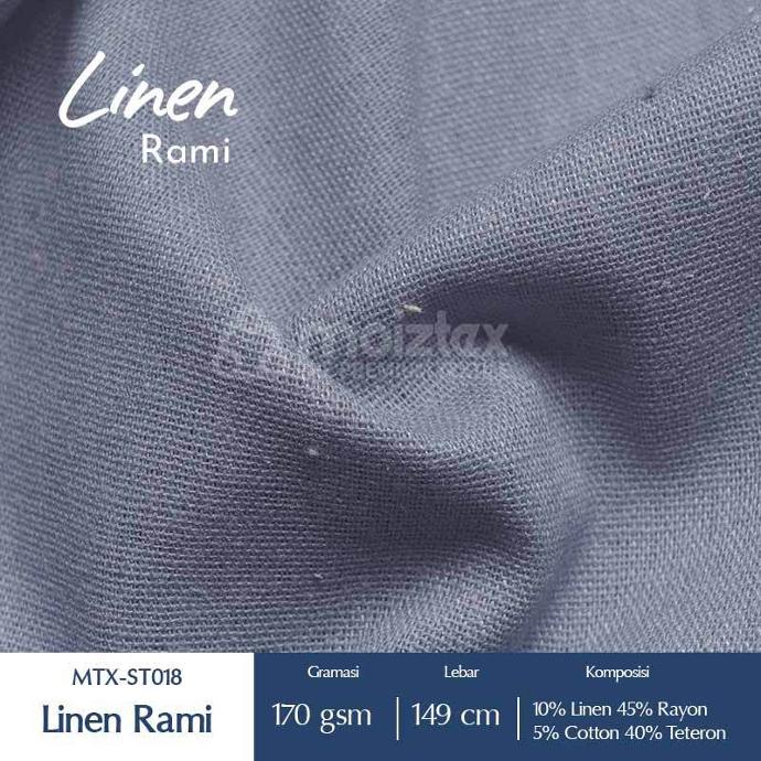 Linen adalah jenis kain yang terbuat dari serat tumbuhan tanaman rami (flax), menawarkan karakteristik kain yang ringan, breathable, dan sangat nyaman. Kain linen dikenal dengan teksturnya yang kasar namun halus saat disentuh, memberikan nuansa elegan dan santai pada pakaian atau tekstil rumah tangga. Selain itu, linen memiliki kemampuan menyerap kelembaban dengan baik, membuatnya cocok untuk digunakan dalam cuaca panas karena memberikan sensasi dingin dan menyegarkan. Kelebihan lainnya termasuk ketahanan dan daya tahan yang tinggi, serta kemampuannya untuk menjadi semakin lembut dan nyaman seiring penggunaan dan pencucian.