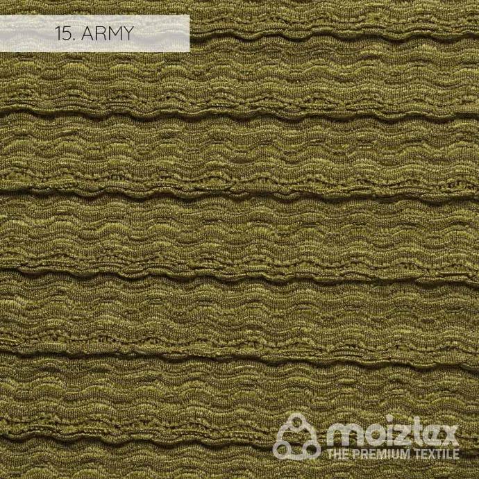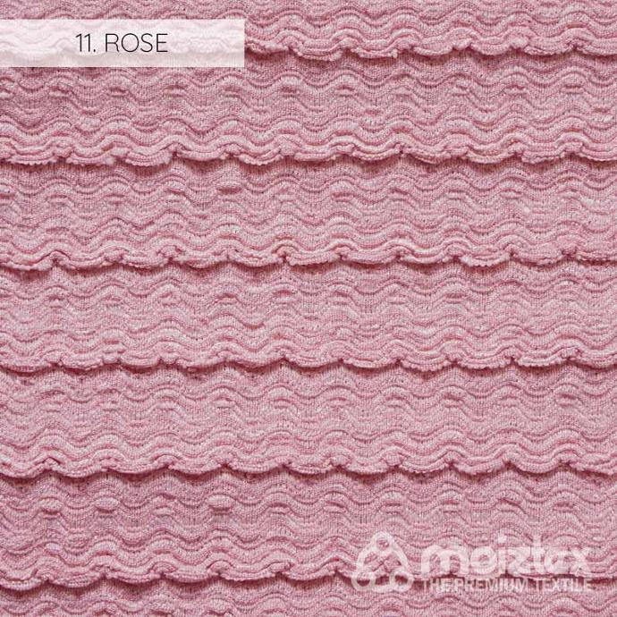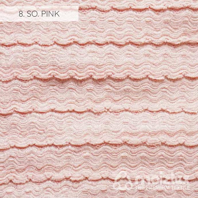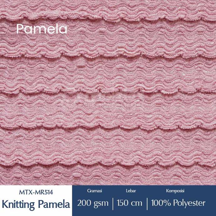 Kain Knitting Pamela adalah knitting ini memilik tekstur timbul seperti gelombang dengan arah horizontal membuat tampilan yang harmonis. Kain ini mempunyai stretch ke semua arah dan lembut dikulit sehingga nyaman dikenakan. Dikombinasikan dengan pilihan warna kain yg cerah sehingga memberikan kesan feminim dan menarik. Kain knitting pamela ini cocok untuk dibuat baju anak, dress, celana, outer, one set hingga kaos.